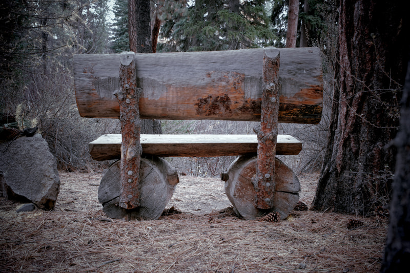 Hewn bench at Shevlin Park in Bend, Oregon.
